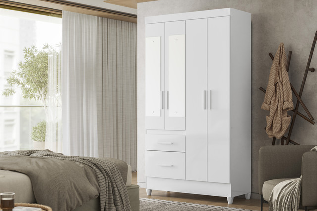 O Guarda Roupa Madri Moval agora está disponível em versão colorida. Com o sistema Flex Color, é possível escolher a Tonalidade desejada durante a montagem. O modelo conta com 4 portas, 2 gavetas e uma ótima distribuição interna, oferecendo uma combinação de funcionalidade, qualidade e estética, características da Moval.