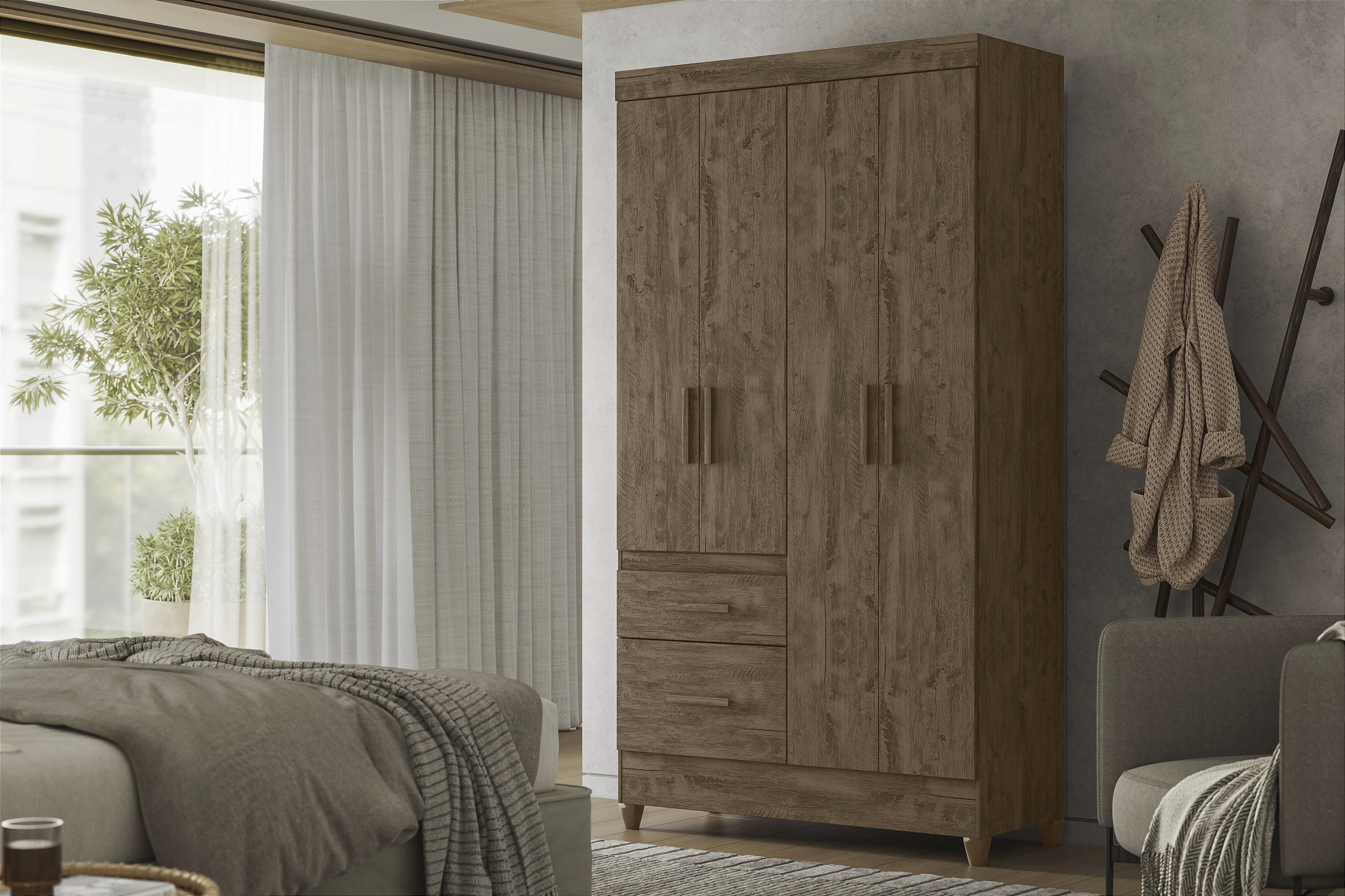 Guarda Roupa Solteiro Madri Castanho Wood 4 portas